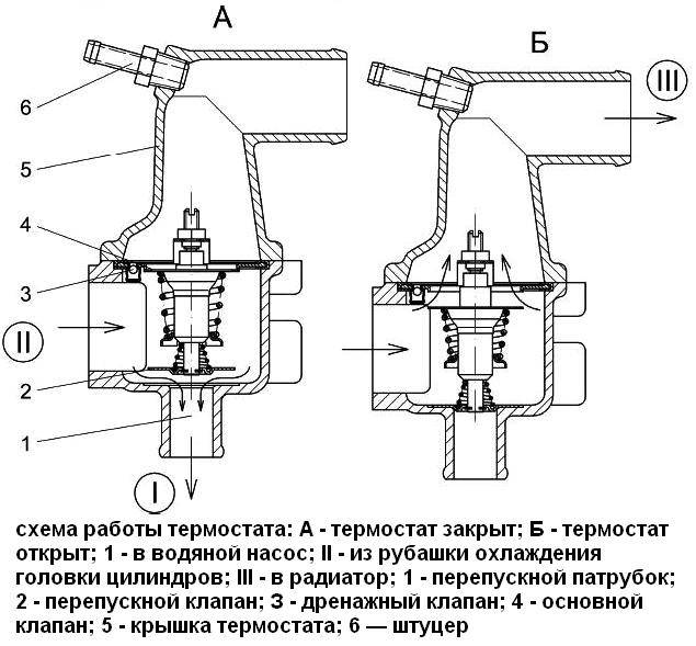 Он закрыт, когда двигатель холодный, что позволяет автомобилю быстрее прогреваться. Как только автомобиль достигает рабочей температуры, термостат открывается и позволяет охлаждающей жидкости циркулировать через радиатор для охлаждения.