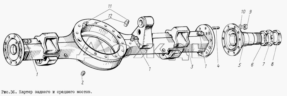 Редукторы заднего и среднего мостов имеют следующее различие.