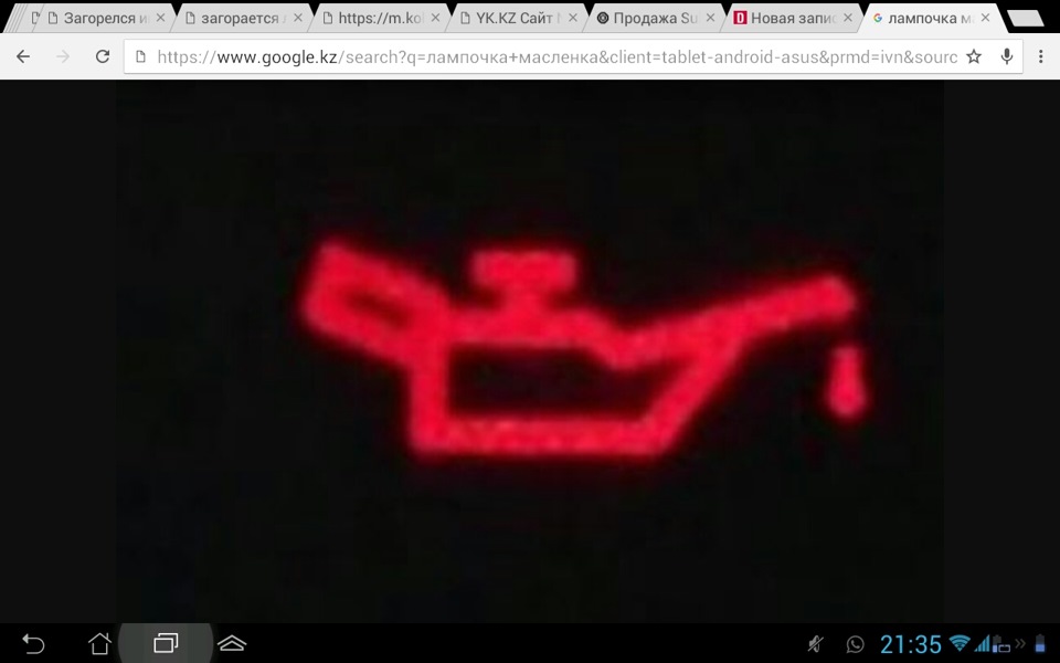 Если загорелась лампочка — это означает недостаточное давление масла в двигателе. Как правило, она загорается лишь на несколько секунд и не представляет для мотора большую угрозу. Например, она может загораться при сильном крене машины в повороте или при холодном пуске зимой. Первым делом, когда загорится данная лампочка — проверьте наличие моторного масла. Если уровень ниже нормы, возможно загорание лампы. Проблема решается просто — нужно долить масло до нужного уровня. Если лампочка погасла — радуемся, и не забываем вовремя доливать масло, иначе это может обернуться серьезными проблемами.Также, данная ситуация происходит, когда меняют масло в двигателе на новое.