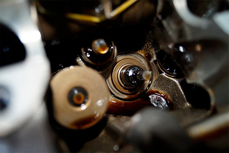 Главное условие правильной работы ДВС — наличие масла. Вращаясь, распределительный вал все время пребывает в тумане сгорающего масла, а смазка не должна присутствовать в камере сгорания. Там может находиться только сгорающая воздушно-топливная смесь. Если вдруг масло попадает в камеру, то ухудшается сгорание, и увеличивается потребление бензина. К тому же, может образоваться нагар на нижних частях клапанов, на стенках цилиндров и поршневых колец. Это становится причиной того, что клапан не закрывается плотно.
