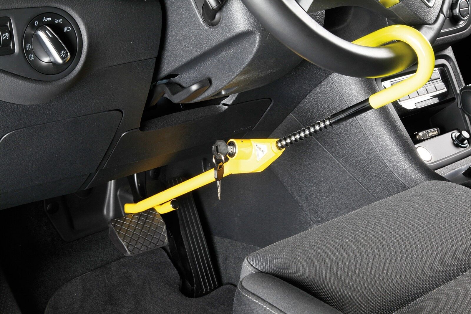 К механической защите машины от угона относятся различные блокираторы и секретки. Производители предлагают комплексные устройства, что бы обезопасить машину от угона с их помощью, так как основной акцент заключается в потере времени злоумышленником, пытающимся разблокировать все системы. Такой инструмент можно поставить на руль, педали, капот, коробку передач и другие возможные места.