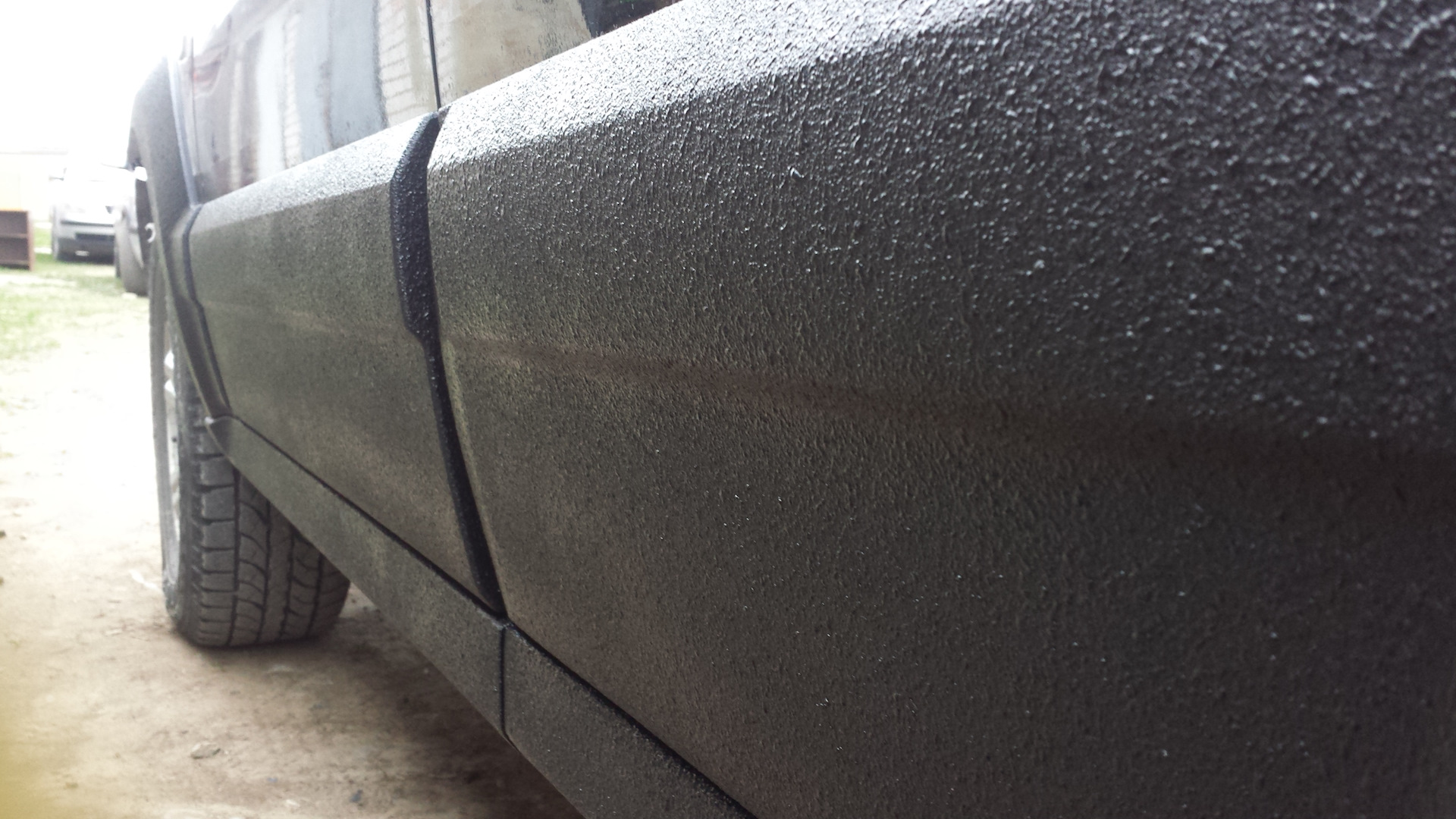 — Покрытие разработано специально для кузова грузовиков и пикапов, т.к. именно там постоянно скапливается вода и грязь, а постоянные погрузки-разгрузки содержимого кузова царапают любое лакокрасочное покрытие нанесенное в кузове.