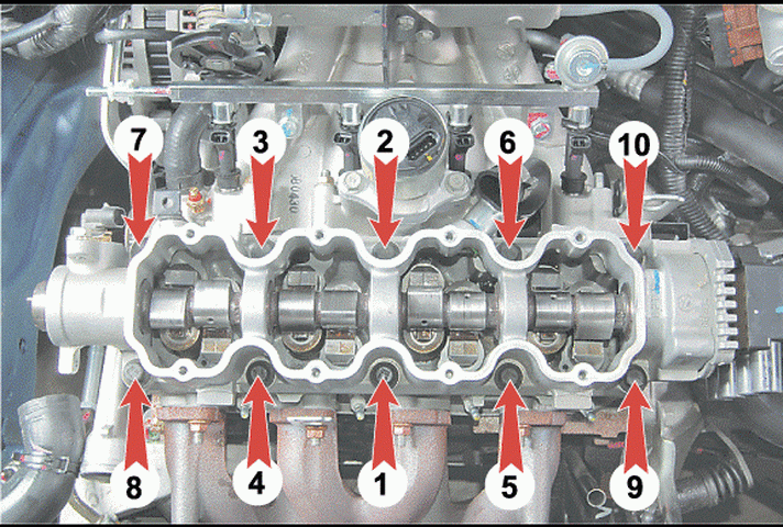 - Затяжку производить в строгом порядке, как указано на картинке и только на холодном двигателе.