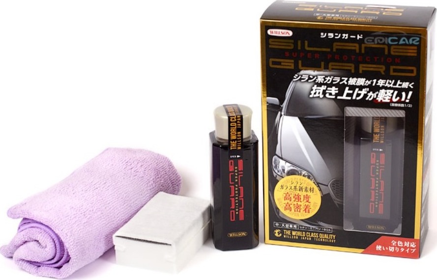 Этот современный материал представляет собой полироль, которая обеспечивает максимально долговременную защиту кузова автомобиля от атмосферных осадков и пыли. При этом покрытие обладает не только водо- и грязеотталкивающими свойствами, но и обеспечивает зеркальный блеск лакокрасочной поверхности кузова. Жидкое стекло Willson от японского производителя пригодно для обработки любого лакокрасочного покрытия, включая металлик и перламутр.
