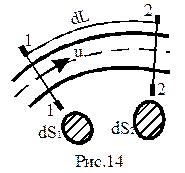 тока совпадают с траекториями движущихся частиц. Построим замкнутый контур, образующий малую площадку dS , и через все точки данного контура проведем линии тока. Эти линии образуют поверхность, называемой трубкой тока. Если через все точки площади dS провести линии тока, получим элементарную струйку, т.е. пучок линий тока. Совокупность элементарных струек образует поток.