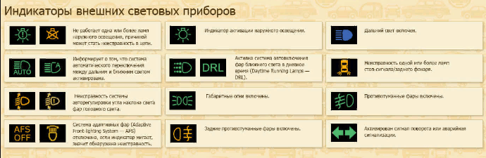 Символы освещения автомобиля