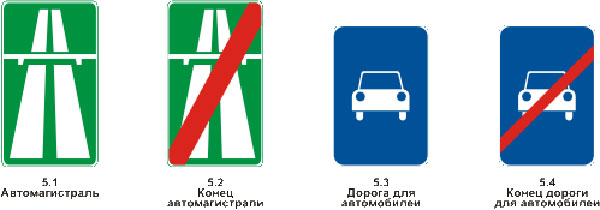 5.1 «Автомагистраль». Дорога, на которой действуют требования Правил дорожного движения Российской Федерации, устанавливающие порядок движения по автомагистралям.![]()