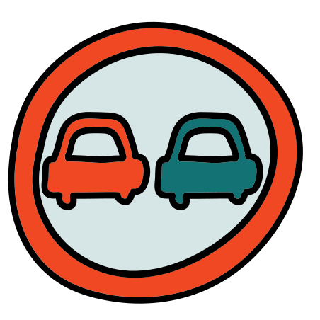 | Запрещён обгон всех транспортных средств. Запрещается обгон всех транспортных средств, кроме тихоходных транспортных средств, гужевых повозок, велосипедов, мопедов и двухколесных мотоциклов без бокового прицепа. Действует до первого перекрёстка, либо до знаков 3.21 и 3.31. |