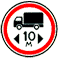 Запрещается движение транспортных средств, у которых общая фактическая масса, приходящаяся на любую ось, превышает цифру на знаке. Действует до первого перекрёстка. Для двухосного транспортного средства на переднюю ось приходится 1/3 массы, на заднюю — 2/3. Если более 2 осей, то масса распределяется по ним равномерно. |
