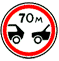 Запрещается движение транспортных средств с дистанцией между ними меньше указанной на знаке. Действует до первого перекрёстка, в населенных пунктах при отсутствии перекрестка – до конца населенного пункта, либо до знака Зона действия знака может быть уменьшена применением таблички |