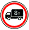 Запрещается движение транспортных средств, (в том числе с прицепом), общая фактическая масса которых больше цифры на знаке. Действует до первого перекрёстка. |