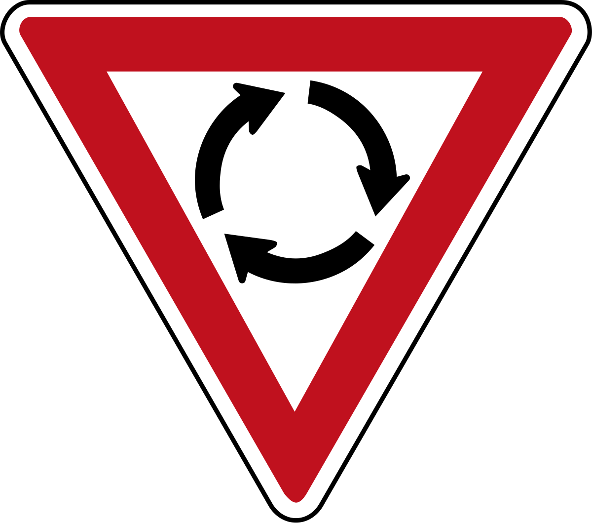 Комментарий: Порядок проезда перекрестков с круговым движением, на которых установлены знаки приоритета, такой же, как и обычные перекрестков неравнозначных дорог. Знак 2.4 «Уступить дорогу» обязывает вас уступить дорогу обоим транспортным средствам.