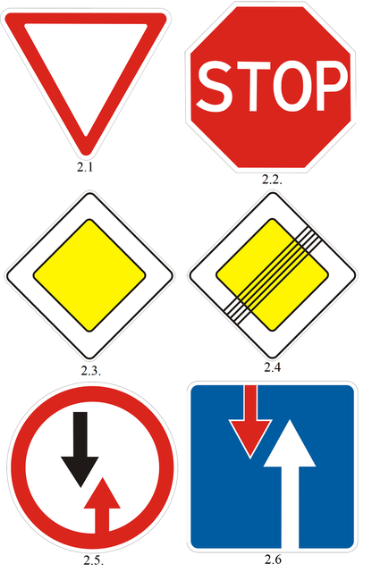 Особая роль знаков приоритета состоит в том, что эти обозначения впрямую конкурируют с сигналами светофора. Приоритет движения выделяется на таком знаке линией большей ширины, которая обозначает основную магистраль, по которой движение осуществляется в первоочередном порядке.