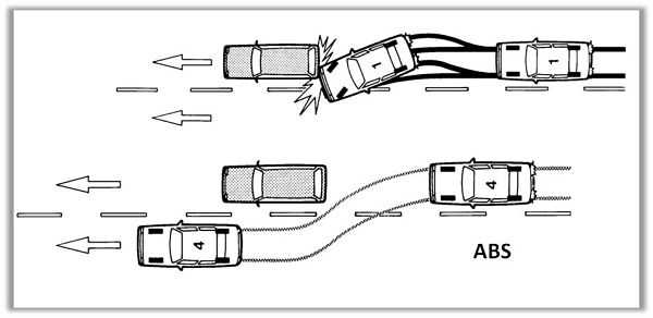 Каждому водителю следует осознавать, что недостаточно просто вовремя воспользоваться педалью тормоза. Так как если при большой скорости резко нажать на тормоз, то колеса автомобиля блокируются, в результате чего не будет сцепки колес с дорожным покрытием. Покрытие дороги может быть разным, поэтому и скорость скольжения колес будет разная. В результате транспортное средство перестает быть управляемым и может легко пойти в занос. Если владелец автомашины неопытный, то контролирование направления автомобиля может выдаться ему не по силам.
