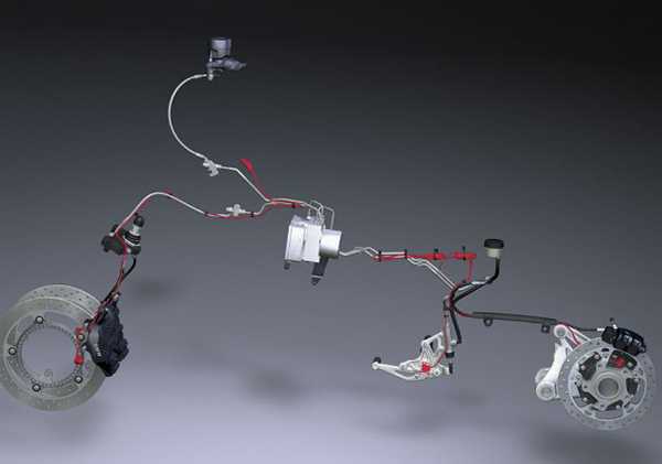 На каждый тормозной механизм приходится по одному комплекту клапанов (впускной и выпускной). По одной демпферной камере и гидроаккумулятору используется на контур. Что касается помпы, то она – одна на исполнительный модуль. Элементы соединены между собой трубопроводами.