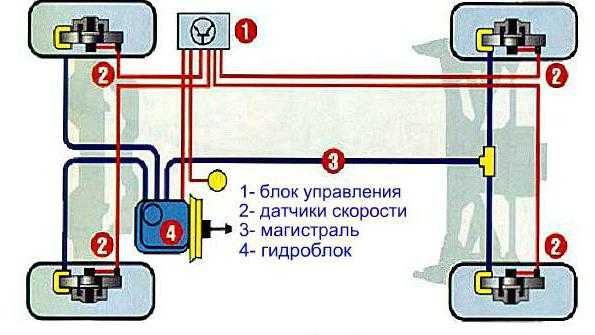 Обсуждаемая суть работы АБС, представляет самую новую четырехканальную систему, в которой происходит контроль всех колес транспортного средства.