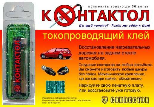 - Еще дешевле будет метод применения токопроводящего клея типа «Контактол» или «Элеконт». В этом случае достаточно просто нанести клей на поврежденный участок с перекрытием проблемной зоны в 5-10 мм. Если клей не поддельный, то такое соединение сможет работать очень долго и не вызывать проблем.