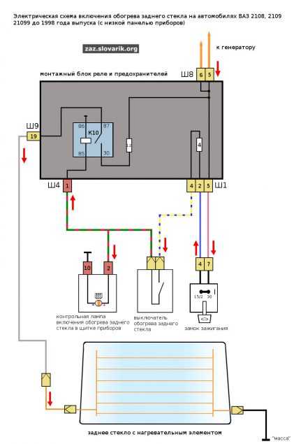 Схема обогрева заднего стекла автоРасшифровка схемы: