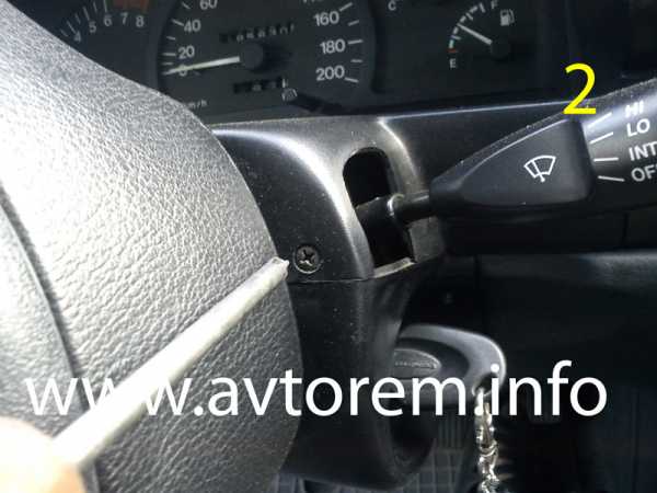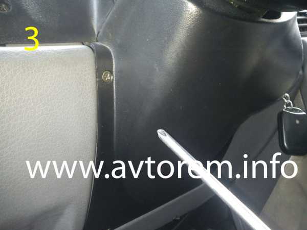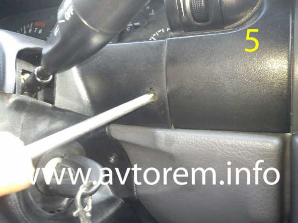 1. Отключаем минусовую клемму с аккумулятора. Используя крестовую отвертку, откручиваем 8 винтов крепления пластмассовых кожухов рулевой колонки (смотрим фотографии 1,2,3,4,5). Снимаем две половинки кожуха.