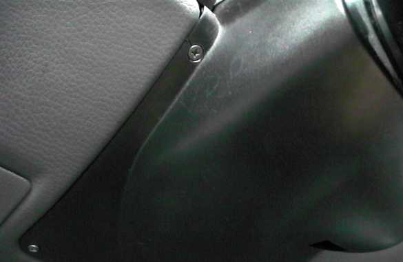 - Закрепляем подрулевую обшивку. Доступ к верхним отверстиям крепежных винтов возможен при прокручивании руля.