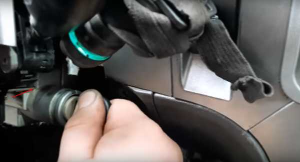 - Причиной неисправности может стать поломка хвостовика на личинке самого замка. Вытащите личинку, для этого пригодится проволока или штырь с подходящим диаметром, около 2-3 мм, загните его под прямым углом, используя шестигранник, и нажмите через отверстие на фиксатор. Одновременно поверните ключ во второе положение. Если все сделано правильно, то это позволит личинке самостоятельно выйти из корпуса на пять миллиметров, вам останется только извлечь ее. Снимать замок зажигания в сборе с личинкой не рекомендуется, т.к это очень трудоемкий процесс, вам придется снимать всю рулевую колонку, чтобы получить возможность добраться до болтов ее крепления.
