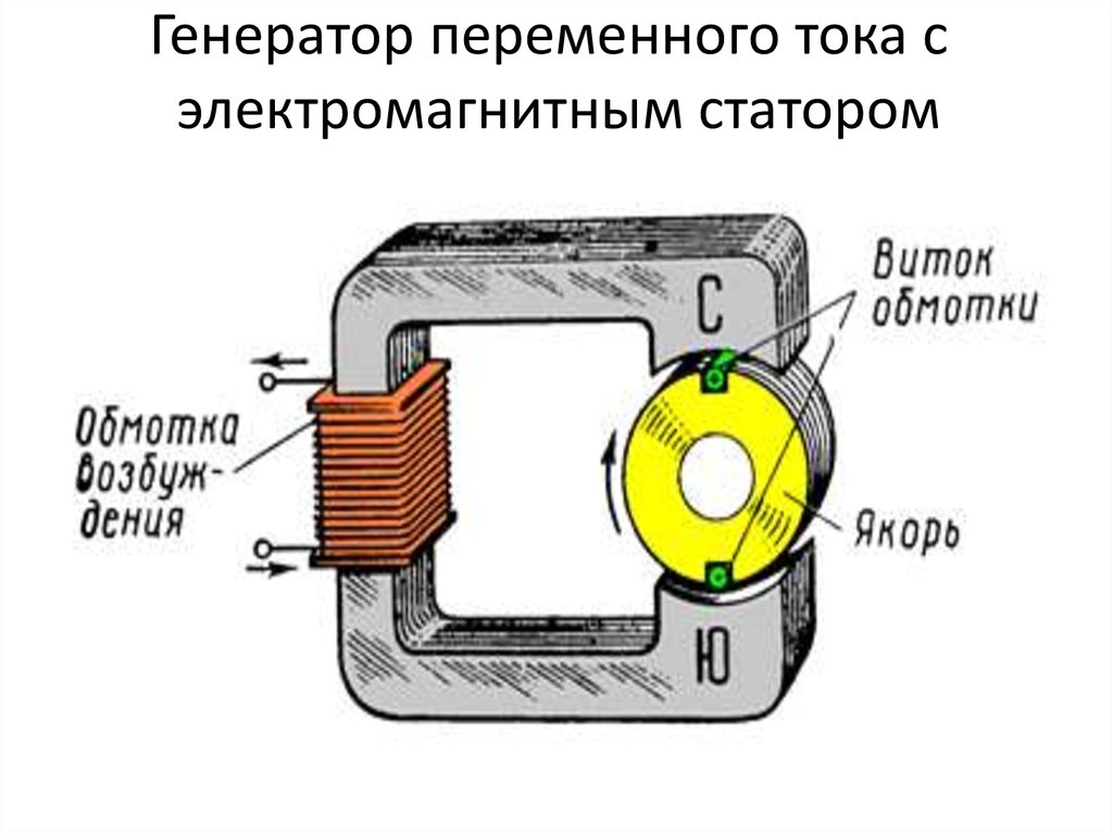 В маломощных синхронных агрегатах питание обмотки возбуждения осуществляется посредством воздействия выпрямленного тока.