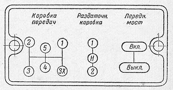 Схема переключения на КПП ЗИЛ 130 и 131 представлена ниже. В целом схема оригинальная, но если верить словам ЗИЛоводов, то к ней можно привыкнуть очень быстро.
