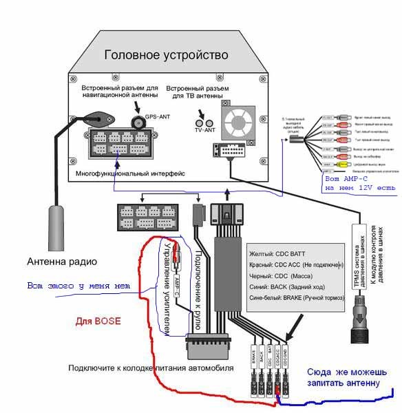 Используйте интеграционный жгут Amp – Подключите заводской усилитель к вторичному радиоприемнику.![]() | |
