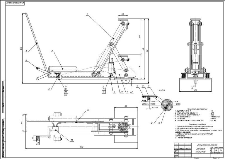Эти элементы могут быть размещены отдельно, тогда изменятся конструктивные особенности, предназначение домкрата, но принцип его работы останется неизменным. Изменим компоновку ручного домкрата и получим подъемник для ремонтной мастерской.