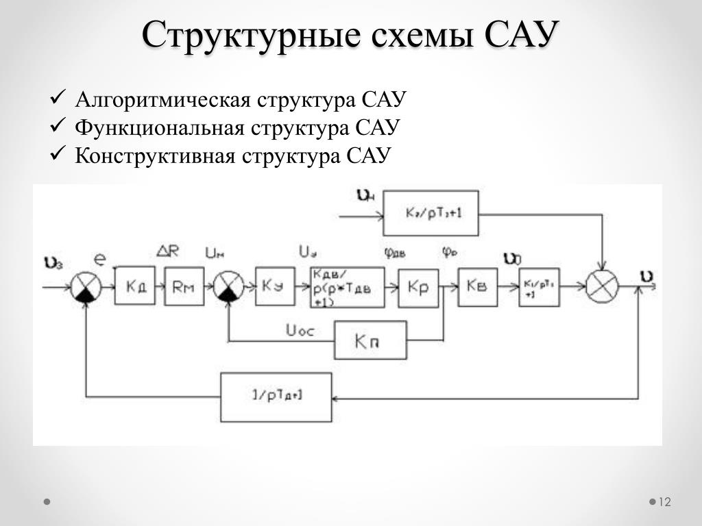 Структурной схемой называют схему, составленную из элементов, каждый из которых совершает математическую операцию преобразования входного сигнала в выходной. Элементы структурной схемы не обязательно должны совпадать с конструктивным выполнением реальных устройств.