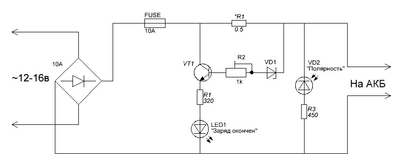 Мастерим простое зарядное устройство для автомобильного аккумулятора по схеме