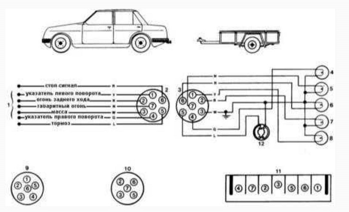Схема подключения розетки прицепа легкового авто: виды и контакты