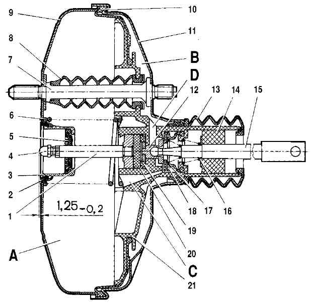 ΠΎΠ΄ΠΈΡΡΡ Π² Π½Π΅ΠΏΠΎΠ΄Π²ΠΈΠΆΠ½ΠΎΠΌ ΡΠΎΡΡΠΎΡΠ½ΠΈΠΈ. ΠΠ°ΠΊ ΡΠΎΠ»ΡΠΊΠΎ Π²ΠΎΠ΄ΠΈΡΠ΅Π»Ρ Π½Π°ΠΆΠΈΠΌΠ°Π΅Ρ Π½Π° ΡΠΎΡΠΌΠΎΠ·, ΡΠ°Π·ΡΡΠΆΠ΅Π½ΠΈΠ΅ ΠΏΠ΅ΡΠ΅ΠΊΡΡΠ²Π°Π΅ΡΡΡ ΡΠ»Π΅Π΄ΡΡΠΈΠΌ ΠΊΠ»Π°ΠΏΠ°Π½ΠΎΠΌ. ΠΠΈΠ°ΡΡΠ°Π³ΠΌΠ° Π΄Π²ΠΈΠ³Π°Π΅ΡΡΡ Π² ΡΡΠΎΡΠΎΠ½Ρ ΡΠΎΡΠΌΠΎΠ·Π½ΠΎΠ³ΠΎ ΡΠΈΠ»ΠΈΠ½Π΄ΡΠ° ΠΈ ΡΠΎΠ»ΠΊΠ°Π΅Ρ ΡΡΠΎΠΊ. ΠΠΎΡΠ»Π΅Π΄Π½ΠΈΠΉ ΠΈ ΡΠ²Π΅Π»ΠΈΡΠΈΠ²Π°Π΅Ρ Π΄Π°Π½Π½ΠΎΠ΅ ΡΡΠΈΠ»ΠΈΠ΅. ΠΡΠ»ΠΈ Π½Π°Π΄Π°Π²ΠΈΡΡ Π½Π° ΠΏΠ΅Π΄Π°Π»Ρ Π΄ΠΎ ΡΠΏΠΎΡΠ°, ΠΎΡΠ²Π΅ΡΡΡΠΈΠ΅ ΡΠ²Π΅Π»ΠΈΡΠΈΡΡΡ. ΠΡΠΈ Π±ΠΎΠ»ΡΡΠ΅ΠΌ Π°ΡΠΌΠΎΡΡΠ΅ΡΠ½ΠΎΠΌ Π΄Π°Π²Π»Π΅Π½ΠΈΠΈ Π²ΠΎΠ·ΡΠ°ΡΡΠ°Π΅Ρ ΠΈ ΡΠ°Π·ΡΡΠΆΠ΅Π½ΠΈΠ΅. Π ΠΈΡΠΎΠ³Π΅ ΠΎΡΠΊΠ»ΠΈΠΊ Π½Π° ΠΏΠ΅Π΄Π°Π»Ρ ΡΡΠ°Π½ΠΎΠ²ΠΈΡΡΡ Π±ΠΎΠ»Π΅Π΅ ΡΠ΅Π·ΠΊΠΈΠΌ.