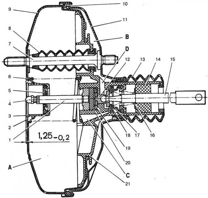 ΠΠΎΠ½ΡΡΡΡΠΊΡΠΈΠ²Π½ΠΎ Π²Π°ΠΊΡΡΠΌΠ½ΡΠΉ ΡΡΠΈΠ»ΠΈΡΠ΅Π»Ρ ΠΏΡΠ΅Π΄ΡΡΠ°Π²Π»ΡΠ΅Ρ ΡΠΎΠ±ΠΎΠΉ Π³Π΅ΡΠΌΠ΅ΡΠΈΡΠ½ΡΠΉ ΠΊΠΎΡΠΏΡΡ ΠΎΠΊΡΡΠ³Π»ΠΎΠΉ ΡΠΎΡΠΌΡ. ΠΠ½ ΡΡΡΠ°Π½Π°Π²Π»ΠΈΠ²Π°Π΅ΡΡΡ ΠΏΠ΅ΡΠ΅Π΄ ΡΠΎΡΠΌΠΎΠ·Π½ΠΎΠΉ ΠΏΠ΅Π΄Π°Π»ΡΡ Π² ΠΌΠΎΡΠΎΡΠ½ΠΎΠΌ ΠΎΡΡΠ΅ΠΊΠ΅. ΠΠ° Π΅Π³ΠΎ ΠΊΠΎΡΠΏΡΡΠ΅ ΡΠ°ΡΠΏΠΎΠ»Π°Π³Π°Π΅ΡΡΡ Π³Π»Π°Π²Π½ΡΠΉ ΡΠΎΡΠΌΠΎΠ·Π½ΠΎΠΉ ΡΠΈΠ»ΠΈΠ½Π΄Ρ. Π‘ΡΡΠ΅ΡΡΠ²ΡΠ΅Ρ Π΅ΡΠ΅ ΠΎΠ΄Π½Π° ΡΠ°Π·Π½ΠΎΠ²ΠΈΠ΄Π½ΠΎΡΡΡ ΡΡΡΡΠΎΠΉΡΡΠ²Π° β Π³ΠΈΠ΄ΡΠΎΠ²Π°ΠΊΡΡΠΌΠ½ΡΠΉ ΡΡΠΈΠ»ΠΈΡΠ΅Π»Ρ ΡΠΎΡΠΌΠΎΠ·ΠΎΠ², ΠΊΠΎΡΠΎΡΡΠΉ Π²ΠΊΠ»ΡΡΠ΅Π½ Π² Π³ΠΈΠ΄ΡΠ°Π²Π»ΠΈΡΠ΅ΡΠΊΡΡ ΡΠ°ΡΡΡ ΠΏΡΠΈΠ²ΠΎΠ΄Π°.