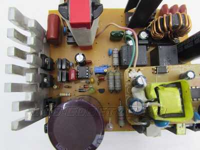 Импульсный источник питания собран по полумостовой схеме, на базе самотактируемого драйвера IR2153. Выход микросхемы был дополнен повторителем. Такое решение разгружает выход микросхемы, а также появляется возможность управления несколькими парами ключей, за счет большого тока управления.